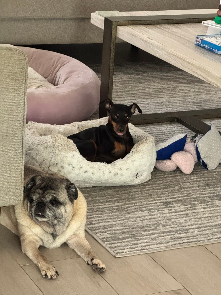 Then came Isabella, my spirited little miniature pinscher who arrived in our lives in less-than-ideal circumstances — timid, tick-covered, living in filth, and barely strong enough to stand. We “rescued” her (read: paid for her freedom) from a pet shop, and she promptly taught me the meaning of chaos, resilience, and devotion.